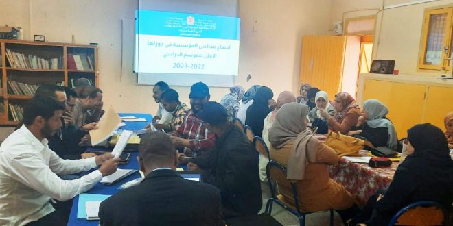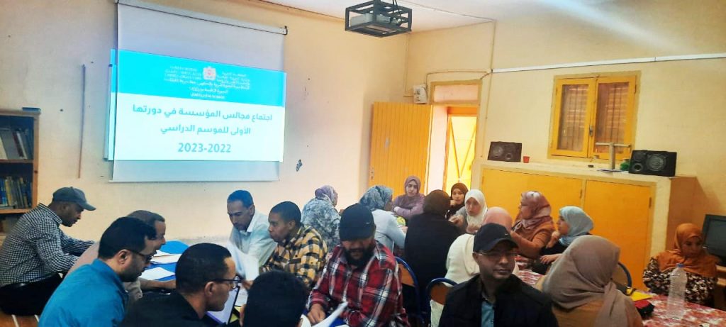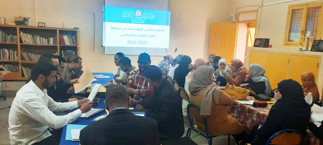 Suite à l’invitation du Président de l’établissement, et conformément aux prescriptions de l’Arrêté Ministériel 22.11 du 28 juin 2022 portant sur l’organisation de l’année scolaire 2022-2023 et de la Note Ministérielle 22.61 du 19 juillet 2022 relative préparatifs de la rentrée scolarité 2022-2023, et en exécution des missions et attributions des conseils pédagogiques prévues à l’article 26 du décret 2.02.376 du 17/07/2002 portant sur le statut des établissements publics et d’enseignement ; Conformément aux exigences de la note ministérielle 155 du 17 novembre 2011 relative à l’activation de la vie scolaire dans les établissements d’enseignement, les membres des conseils pédagogiques se sont réunis en première séance à l’unité centrale du secteur scolaire Idelsane le samedi 01 octobre 2022 à neuf heures du matin, pour discuter les points suivant :