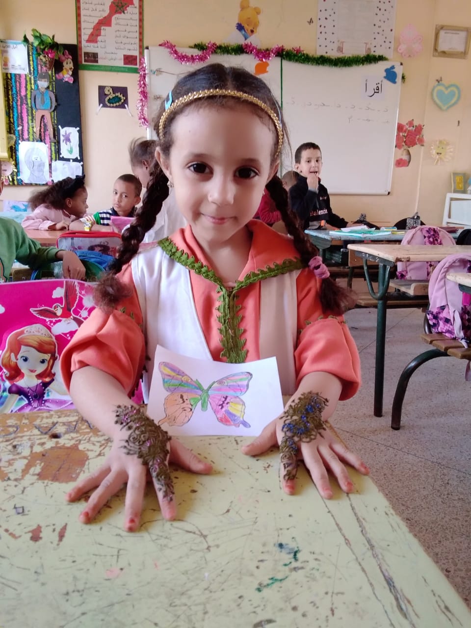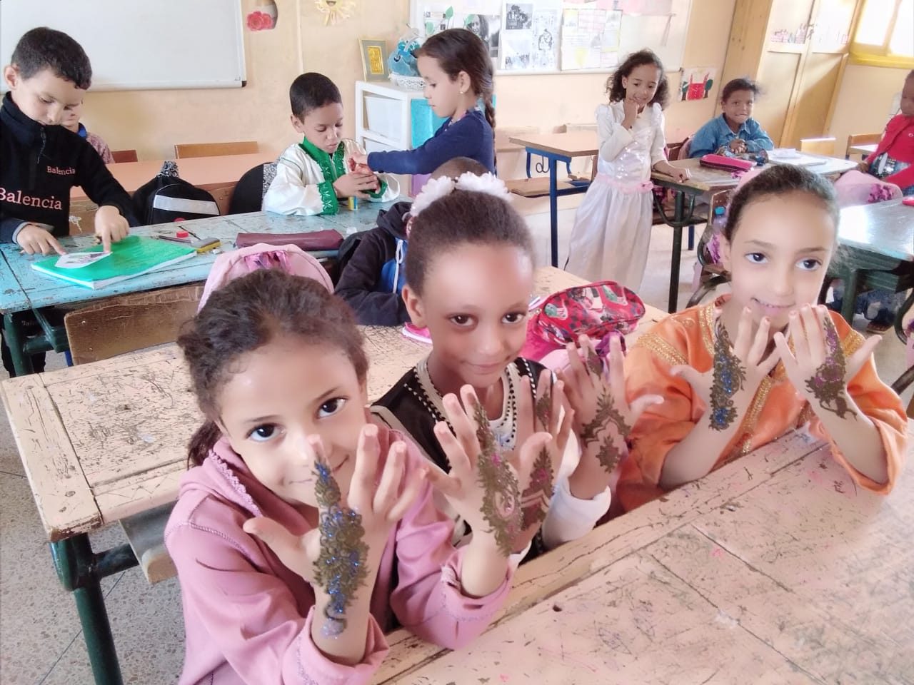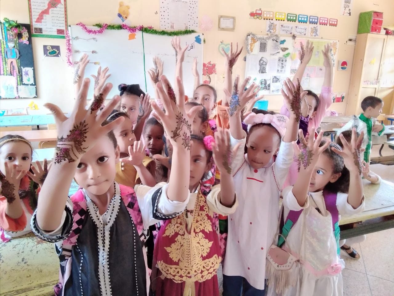 A l'occasion de l'anniversaire du Prophète, Mme Asma OUHINE et Mme Rachida OULHCHOUM ont organisé une petite cérémonie du henné au profit les élèves de la première et la deuxième année.
