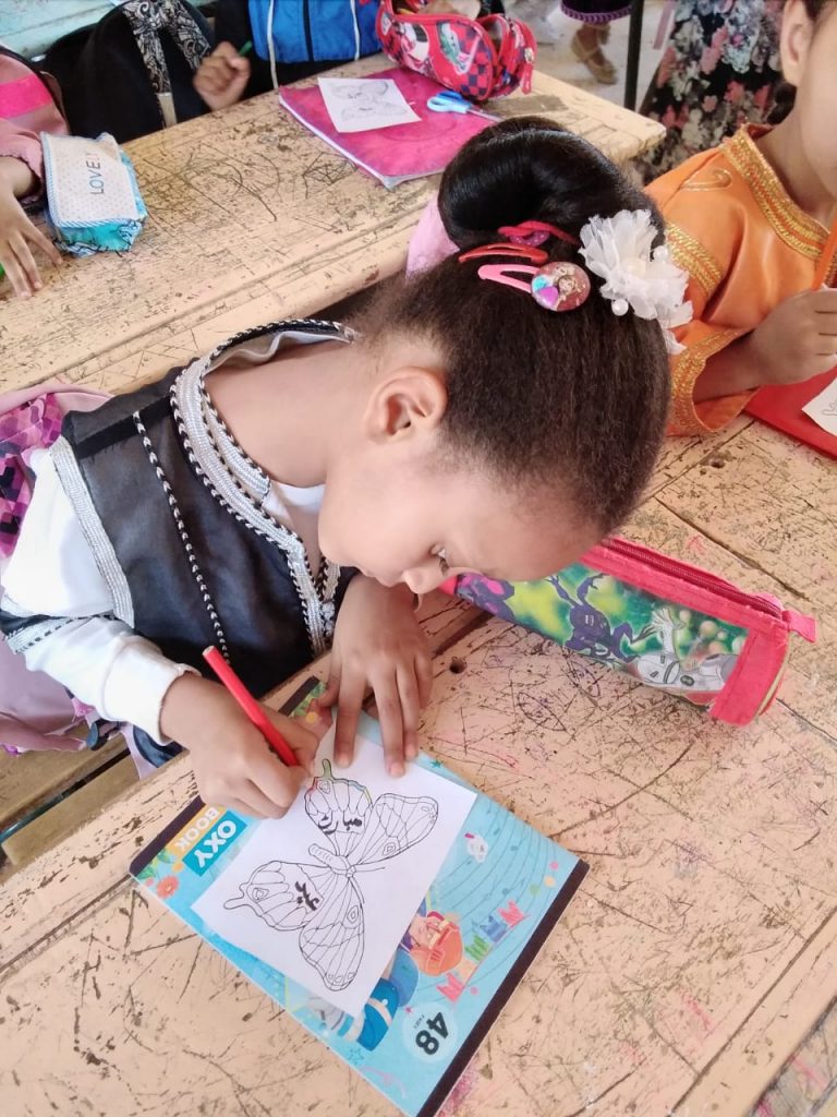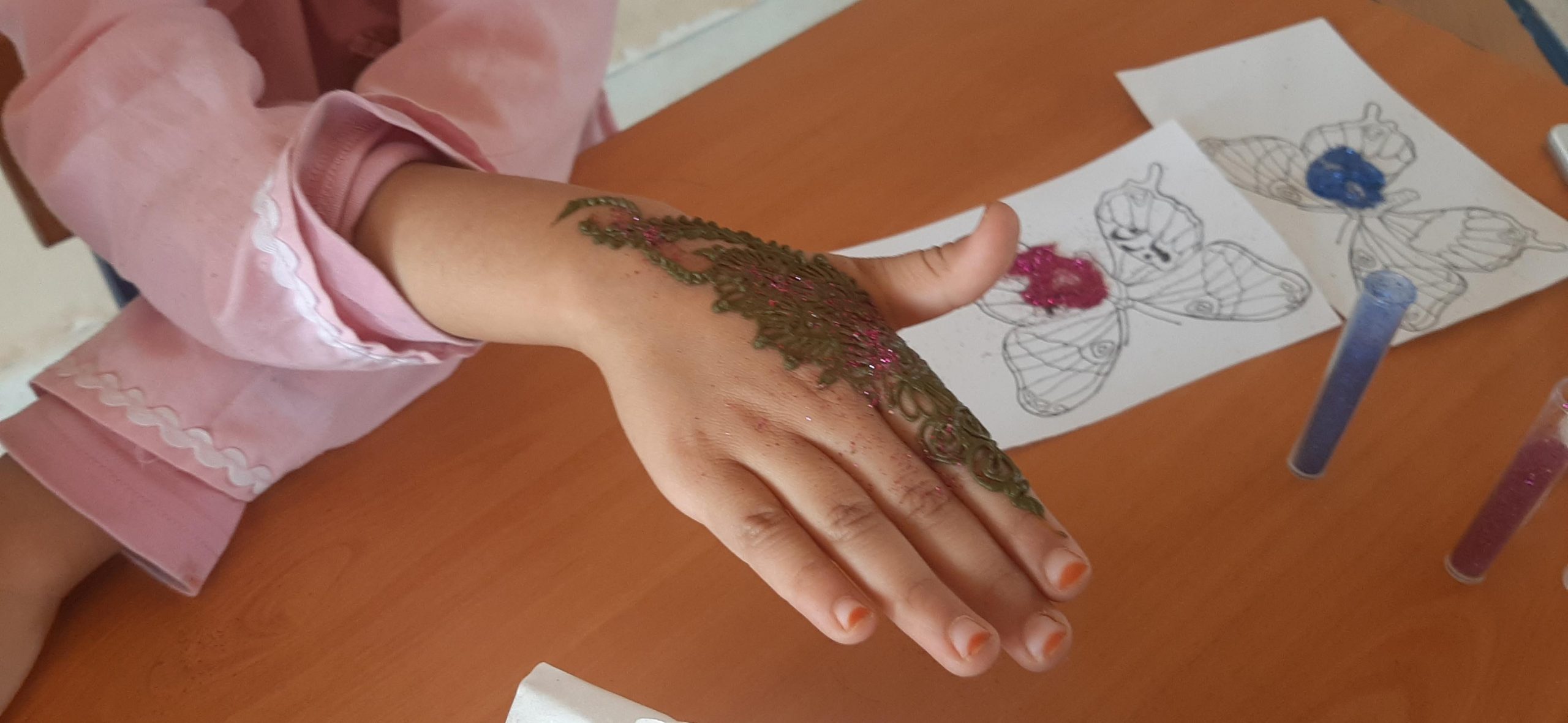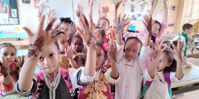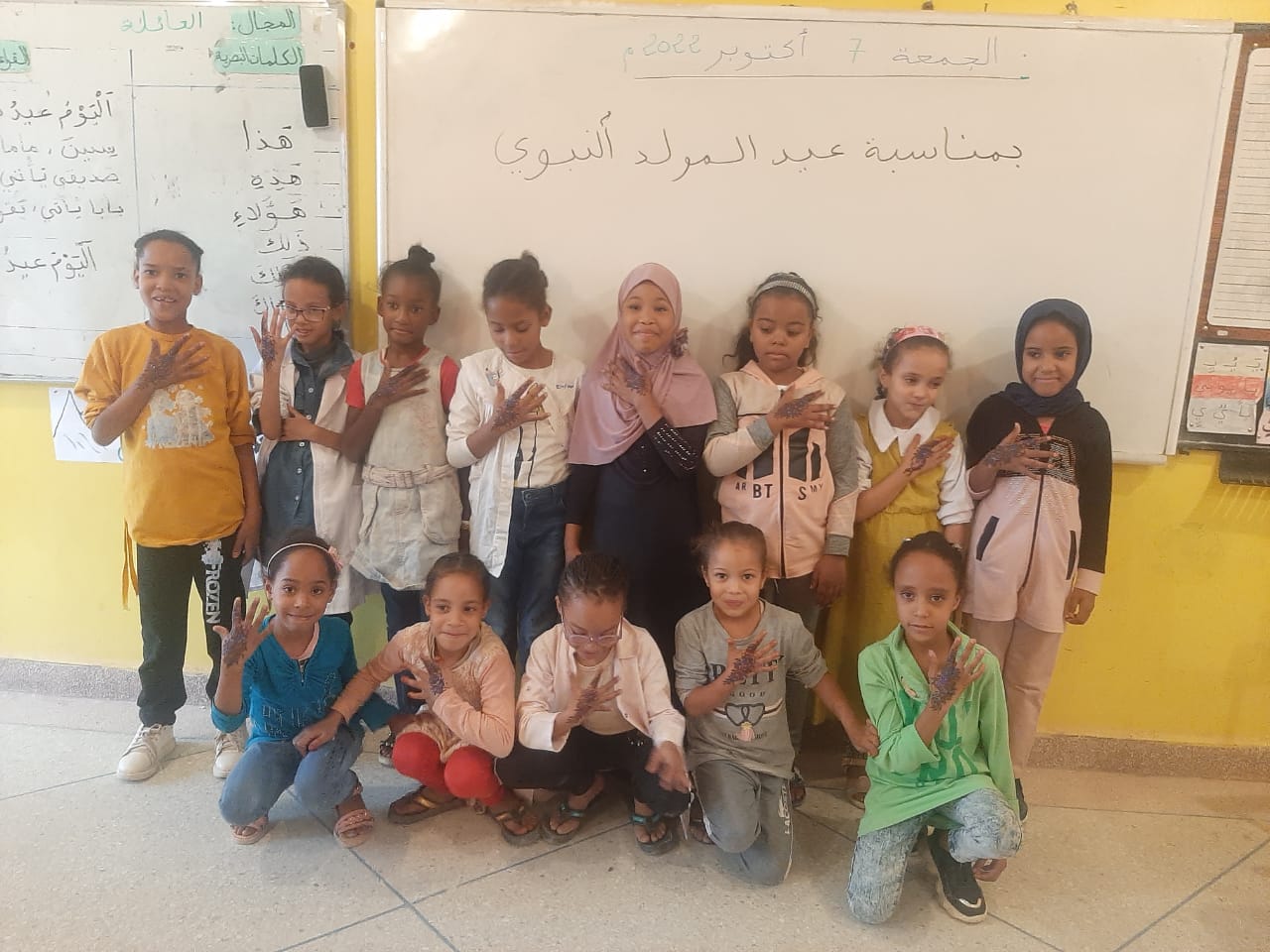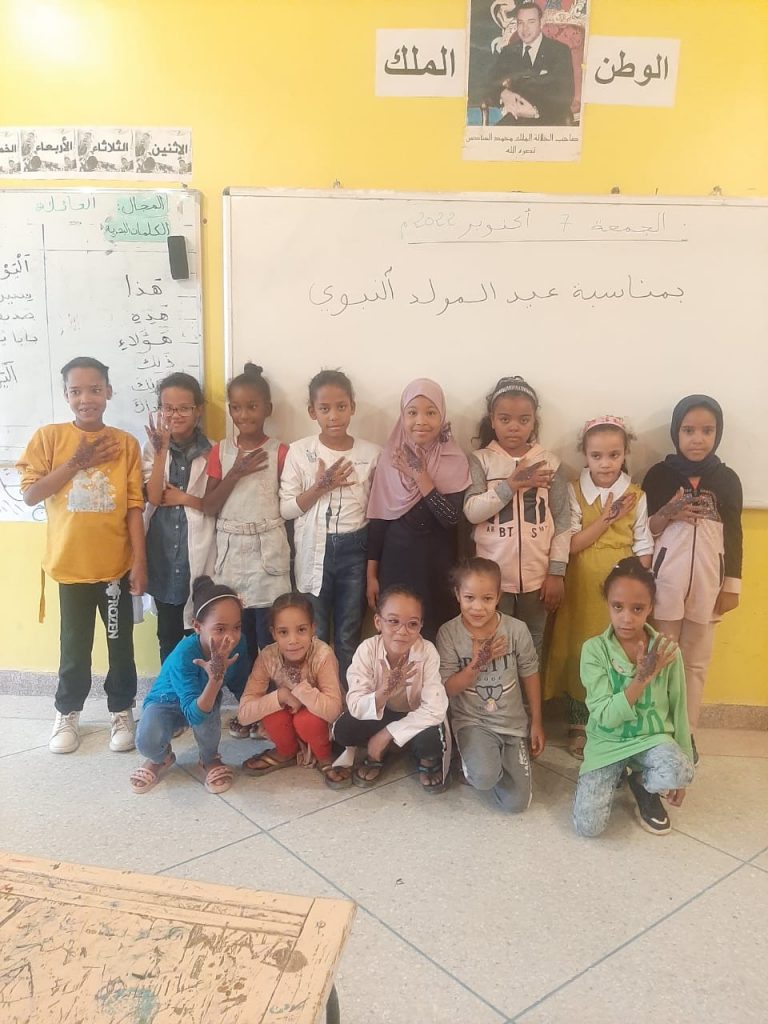 A l'occasion de l'anniversaire du Prophète, Mme Asma OUHINE et Mme Rachida OULHCHOUM ont organisé une petite cérémonie du henné au profit les élèves de la première et la deuxième année.