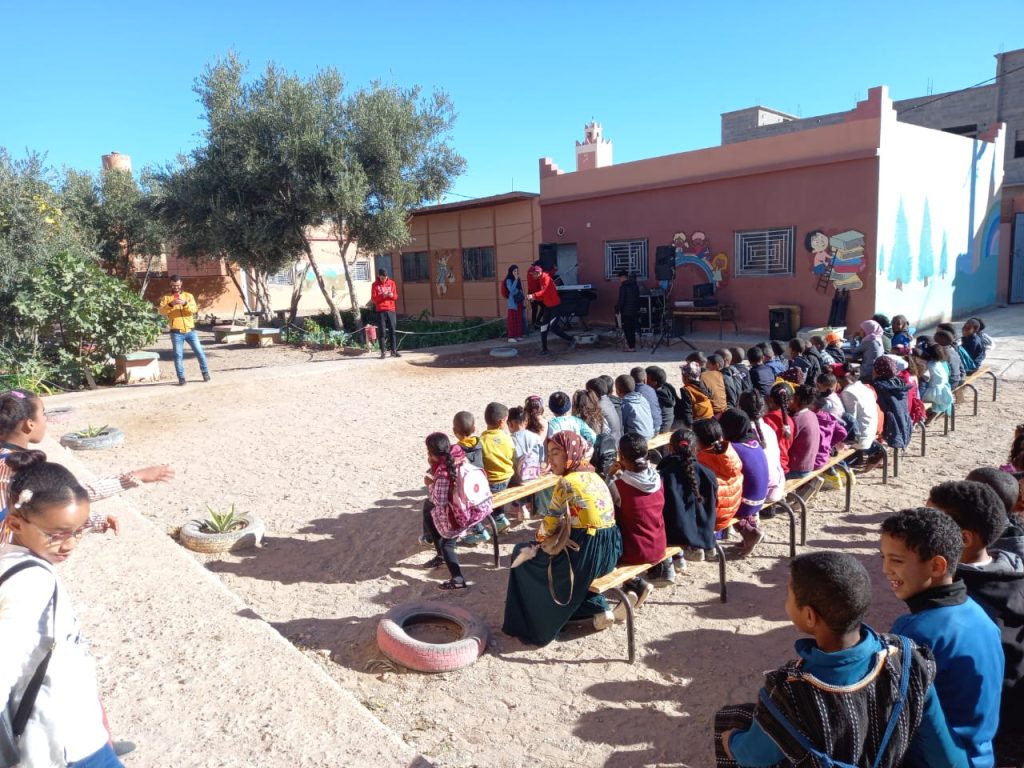 A l’occasion du 67ème anniversaire de l’indépendance du Maroc et en partenariat avec l’association Al Ihyae pour le Development à Ouarzazate, l’Unité Afra du Secteur scolaire Idelssane a organisé des ateliers pédagogiques et artistiques en dessin et coloriage ainsi des activités ludiques par le clown.